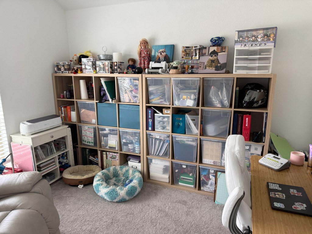 I am already in love with it, even though I know that I’m going to have to do some work on what’s in each container. I am loving the clear containers in the Kallax unit, but I would love to make them look more organized.